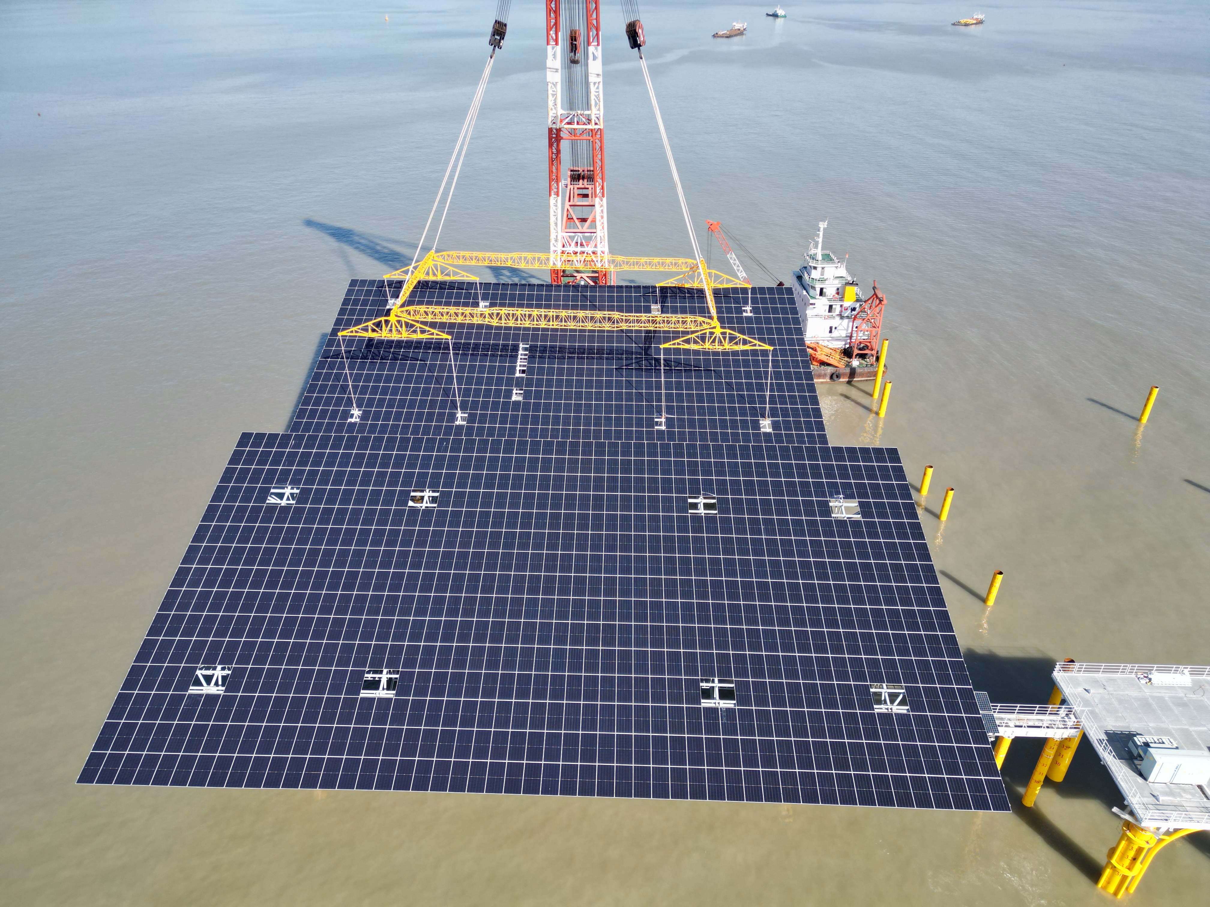 11月28日,由英国威廉集团官网风电承建的中广核宁德200MW海上光伏项目顺利完成首榀光伏支架的安装。