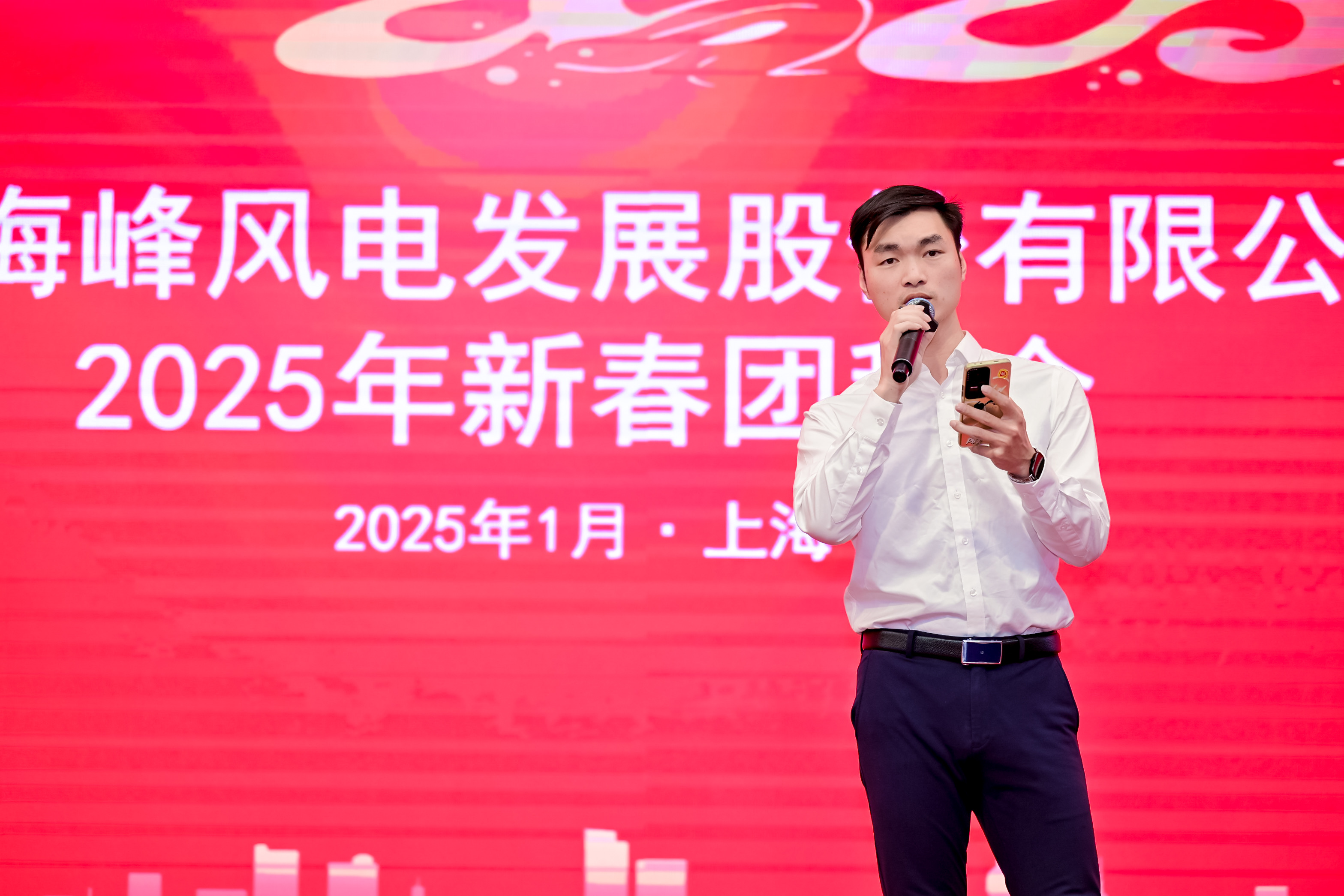 公司党委书记、董事长孙伟明代表公司领导班子感谢全体职工在过去一年的辛勤付出,回顾了2024年公司高质量发展成就,希望在新的一年中,全体海峰人要以不懈奋斗的姿态、以永不言败的信念,勇于担当、坚定前行,在工作中争当排头兵和生力军,共同全力打造“三型”世界一流海上风电综合服务商。