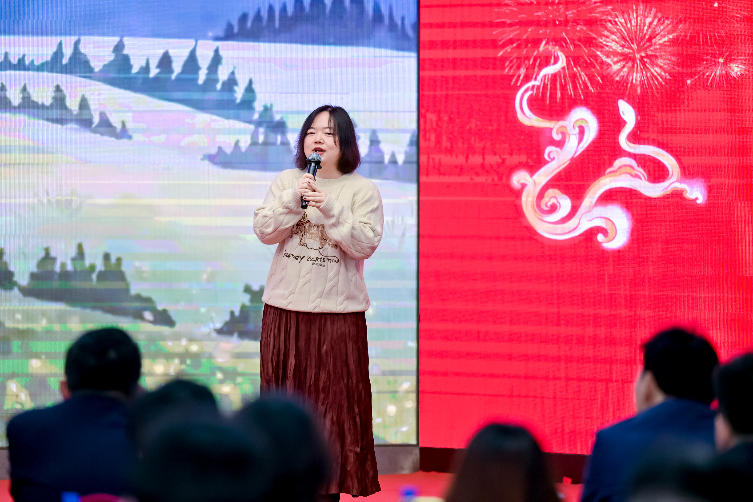 新春团拜会共展演了由公司各部门、事业部及子公司选送的小品、舞蹈、魔术、歌曲、乐器演奏等12个节目。